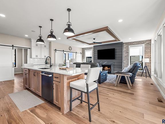 Welcome to this stunning yet welcoming Pride Built Homes two story located within steps of highly rated middle and elementary schools! Nestled on a cul-de sac on a .98 acre lot in a desirable south side neighborhood, this home is nearly new but better with custom remote control shades, EV charger outlet, whole house generator, and security system. From the covered front porch be ushered into the main floor that includes classic brick accents, white oak wood floors, and abundant south facing Andersen black casement windows. The perfect kitchen is ready to host friends and family at a large quartz-topped island served by GE Cafe appliances, painted custom cabinets, induction stove and walk-in pantry with 2nd fridge. The gas fireplace provides a cozy atmosphere in the open floor plan that includes a sunroom perfect for watching the snow fall, reading, or playing. Gorgeous brick feature wall guides you to the laundry room with sink and to the drop-zone with bench and lockers. Head upstairs to the sun drenched primary bedroom suite with perfect walk in closet, zero entry tiled shower, and heated floors. Two more bedrooms with WI closets share a large full bath with double sinks. Handy loft space for homework or playtime plus a separate office finishes off the upper floor. The basement feels nothing like a basement! It's full of light with 9ft ceilings, an electric fireplace and sliders to a covered patio. No excuses when you have this exercise room with mirrors and padded floor! Two more bedrooms feature walk-in closets and share an airy bath with tiled shower. A 2nd office space is connected to one bedroom. Enjoy the garage of your dreams that holds 4 cars and is heated + has water, drain, and epoxy floors. This expansive yard has no backyard neighbors but does have space for all your backyard dreams! Already on site is a screened in composite deck with surround sound and large covered patio with swing+ hot tub. Meticulously cared for and highly upgraded, Timber Oak Place combines luxury, space, and convenience to give you a place you'll love to call home!