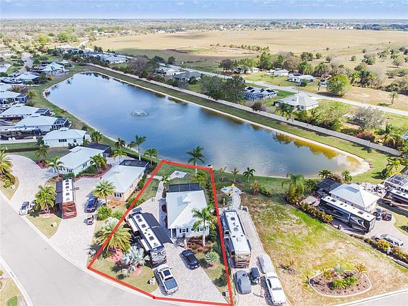 Lot 15 – A Statement of Luxury on the Water Discover unmatched elegance and comfort at Lot 15 in Thornton Creek Motorcoach Resort. This stunning custom casita combines high-end finishes, full indoor-outdoor integration, and breathtaking long-range water views—creating a truly elevated living experience. Recently upgraded with sliding glass doors that fully enclose the entire 1,000 sq. ft. under air, this casita offers year-round climate-controlled living without sacrificing its seamless connection to the outdoors. The main living area features soaring vaulted ceilings, a beautiful gas fireplace, and refined coastal design that sets the tone for the entire home. The gourmet kitchen is a showstopper, showcasing leathered granite countertops, marine-grade cabinetry, and premium stainless appliances—including a gas cooktop. A spacious island with barstool seating makes the perfect gathering space for cooking, entertaining, or enjoying morning coffee overlooking the water. The king-size bedroom provides a peaceful and private retreat, while the spa-inspired bathroom features an oversized tiled walk-in shower with bench seating and a sleek glass enclosure. Every detail has been chosen for both beauty and durability. Step into the screened lanai—now easily transitioned into conditioned space thanks to the new sliding doors—and take in the unobstructed, postcard-worthy lake views. With motorized Kevlar hurricane screens, this area can be enjoyed in any weather. Additional features include a golf cart garage, elegant lighting throughout, and a pull-in paver RV pad that provides easy access and ideal positioning for your motorcoach. With its luxurious finishes, thoughtful upgrades, and unmatched waterfront setting, Lot 15 stands as one of the most impressive and well-crafted casitas in the entire resort. Schedule your private showing today—your luxury waterfront escape awaits.