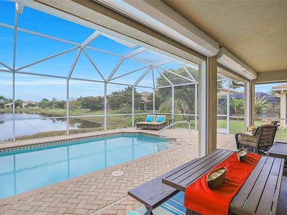 SOUTHERN EXPOSURE POOL HOME W/ LAKEFRONT VIEWS! Immaculate TWO STORY estate home in Catalina Isles is now available! When you walk up to your dream home you will be greeted with brick pavers that lead you to the French doors. This home has 4BR+Loft, 2.5BA w/2 car garage with over 2600 sqft of living. As soon as you enter you will fall in love with the open floor plan and soaring ceilings! Features include: tile and laminate floors, new carpet, granite & wood cabinets and stainless steel appliances. There are many windows, allowing for plenty of natural light and beautiful lake views from most rooms. Enjoy leisure time in your screened in lanai overlooking the lake with a heated pool and southern exposure for direct sunlight all day long! This gorgeous home is nestled in highly sought after pet/family friendly, amenity rich community with pavilion, pool, playground, exercise room, basic cable, security, and lawn maintenance INCLUDED with low HOA fees of just $224 per month! Conveniently located near Health Park Hospital, and within 5 minutes of shopping and fine dining. Just a short drive to numerous parks, world class fishing and white sandy beaches- the possibilities are ENDLESS!