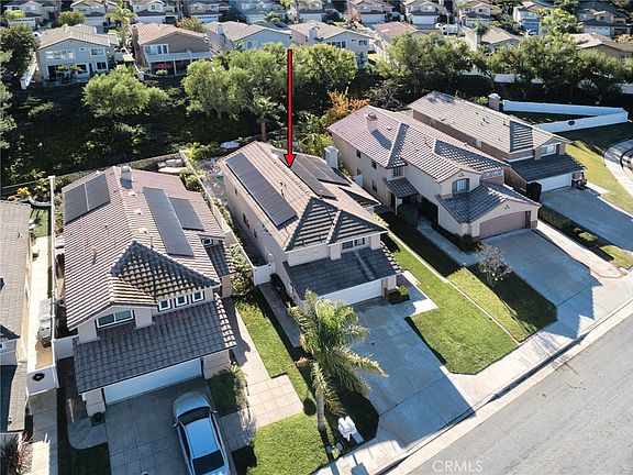 Welcome to this 3-bedroom, 2.5-bathroom home located in the desirable Vintage Place community of Anaheim Hills. Step inside to discover high ceilings, a cozy gas fireplace, and an abundance of natural light, all accented by new vinyl plank flooring. The kitchen is equipped with newer Samsung appliances, including a refrigerator, gas range, microwave, and dishwasher, and features a convenient walk-in pantry, flowing seamlessly into the family room. A half bathroom is conveniently located downstairs for guests. Up the hardwood staircase, you'll find a spacious master suite with a walk-in closet and a large tub/shower combo with a new sliding glass enclosure. There are two additional bedrooms—one featuring built-in cabinets perfect for an office space. A Jack & Jill upstairs bathroom sits between the two bedrooms. Recent upgrades include fresh interior paint, new carpeting in the bedrooms, and new LVT in the bathrooms. Enjoy the outdoor space, highlighted by a private pool and spa, complemented by an HOA-maintained slope for maximum privacy. The home also includes a retractable awning for shade. The attached two-car garage is equipped with a washer/dryer, a tankless water heater, and an EV plug for electric vehicles. With solar panels and a prime location close to exceptional shopping, dining, the freeway, and parks, this home offers a perfect blend of luxury and convenience.