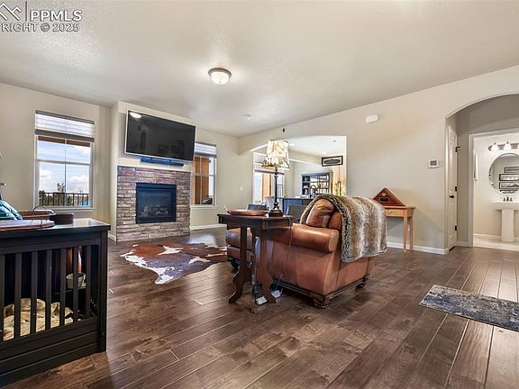 Experience unparalleled mountain vistas and the majestic Pikes Peak in this incredible 2-story townhome. From the moment you arrive, you'll be captivated by the private front patio—a perfect prelude to the exceptional living spaces within. Step inside and be greeted by a spacious living room adorned with beautiful engineered flooring and a cozy gas fireplace, creating an inviting atmosphere for both relaxation and entertaining. The living area seamlessly flows into a large, chef-inspired kitchen complete with granite countertops, an expansive island, and an abundance of cabinetry. Enjoy meals in the sunlit nook as you savor breathtaking mountain views, with an outstanding gas stove enhancing your culinary experience. Upstairs, the private master suite is a luxurious retreat, featuring a generously sized bedroom, a stunning 5-piece bath, and a walk-in closet. Two additional well-appointed bedrooms, a full bathroom, a versatile loft area, and a convenient laundry room complete the upper level. For sports enthusiasts and those who love to entertain, the basement offers a sprawling family room that opens to a lower patio—perfect for enjoying more of those captivating mountain views. This level also includes a full bathroom and a large bedroom with a walk-in closet, providing flexibility and comfort. This townhome is a testament to thoughtful design and modern living, offering the ultimate blend of style, functionality, and breathtaking natural beauty. Embrace the lifestyle you deserve in this extraordinary mountain-view retreat!