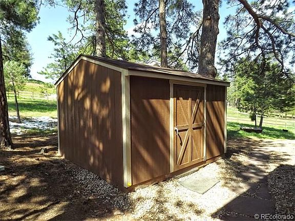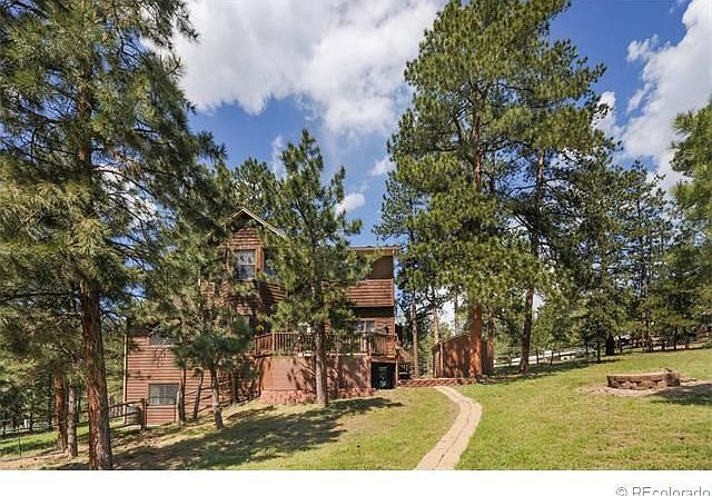 Nestled among mature, beautiful pine trees, you will love to call this house your new home. It has a fabulous open floorplan with large rooms and a full, walkout basement finished with a bedroom, bathroom, and rec room. Site size of almost an acre (.93) provides plenty of space for outdoor activities with a utility shed to conveniently store your "toys". A vaulted ceiling in the living room and an open kitchen, nook, and familyroom provide wonderful volume to this home. The large master suite will satisfy your most discriminating buyer. This is the perfect home for your buyer looking for space, privacy, and value in a well established community. The neighborhood is proximate to the Perry Park Golf Club and Perry Park Ranch known for its dramatic array of "red rock" sandstone rock formations with Pike National Forest and Rampart Range neighboring the community to the west. New Deck, carpeting, AC and Furnace. Exterior recently painted.