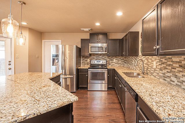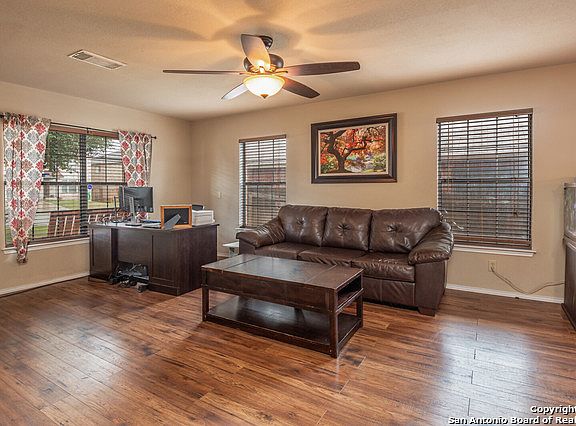 WOW! SPACIOUS, MUST SEE freshly painted home in quiet Cul-de-sac, front porch, 4 sided masonry, covered patio w/ceiling fan, extra deep sink, huge kitchen with Granite island, pass-thru bar, single French door, huge walk-in pantry/utility room, 2nd utility room upstairs, game room, HUGE bedrooms w/ walk-in closets, Great location off FM 78, 3 mins to Super Walmart, and shopping 5 mins to Randolph AF Base, 10 mins from Ft. Sam Army Post. Gorgeous move in ready home to start or raise your family.