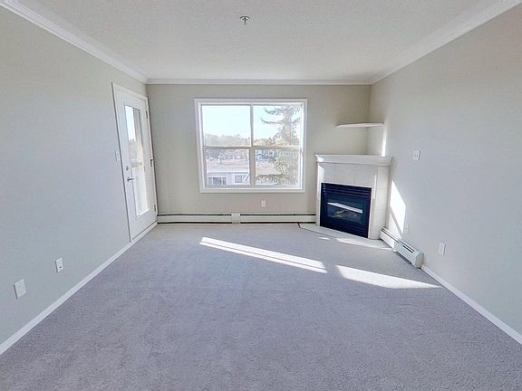 Welcome to this bright and updated 1-bedroom, 1-bathroom condo offering 663 sq. ft. of comfortable living space in a 55+ adult building. The home features brand new carpets, fresh paint, and laminate flooring throughout. The functional layout includes a spacious in-suite laundry room, a kitchen with built-in dishwasher, and a living room with corner gas fireplace and tiled surround. Large south-facing windows provide plenty of natural light and access to a private balcony. This well-maintained building includes an elevator, social room with kitchen, and heated underground parking with personal storage cage. Condo fees cover heat, water, building insurance for common areas, and exterior maintenance. Conveniently located directly across from Bonnie Doon Shopping Centre, with easy access to bus routes, the new LRT line, Bonnie Doon Leisure Centre, and Idylwylde Public Library.