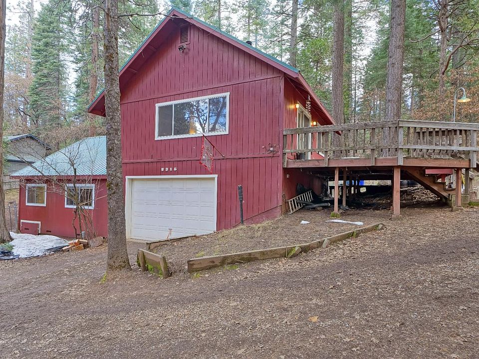 Quaint Country Home with 2 bedrooms (3rd possible), 2 baths and attached garage! The original cabin, the single level on the left was built in 1936, but the entire right side with garage and living room/kitchen/bathroom was finished in 1988. Large living room with wood floors and cozy wood stove, open to kitchen. Beautiful wood wrapped bonus room, currently used as an office. Both bedrooms and another living area and bathroom downstairs with a propane wall heater. Kitchen with pantry room/storage. Detached shed for storage. Close to everything recreational, lakes, skiing, hiking, biking and Lake Tahoe. Seller will consider seller financing with large down.