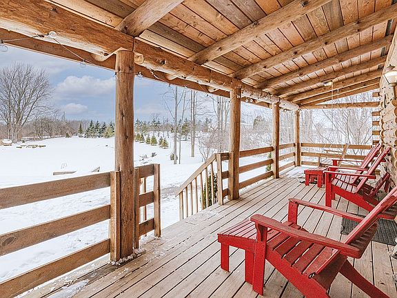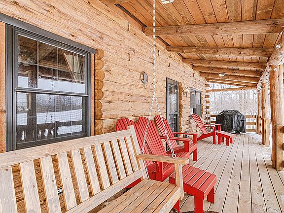 Wow! Move right into this charming, well-kept log home on 7.3 acres in Thompson. Built in 2003, this newer home offers the perfect mix of rustic feel with modern amenities. Featuring a full front porch, updated kitchen, a pond, and a large outbuilding, this property truly has it all! Entering through the front door you will immediately notice the gleaming hardwood floors, vaulted ceilings, and abundant natural light in the great room. Built with an open floor plan, the living area flows seamlessly into the kitchen, which boasts stainless steel appliances and quality cabinetry. A bedroom and a large full bath complete the first floor. Up in the lofted master suite, a spacious bedroom is complemented by a half bath. Down in the fully finished lower level, you will find another bedroom, a full bath, and two additional bonus rooms that could be utilized as a family room, storage room, or potentially additional bedrooms. The lower level features 10' ceilings and walk-out steps up to a Bilco door. A natural gas connection, a luxury for the area, ensures low heating costs. A wood stove in the main living area may be used to supplement. Other highlights include excellent quality well water, a septic system that will pass county inspection, and generator hookups. The fully insulated outbuilding measures 32'x48', has 12'x18' doors and 100 amp electrical service. Act quickly - this unique property is sure to sell fast!