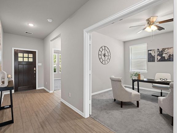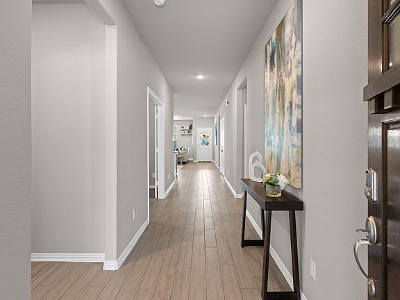 PAID-OFF SOLAR PANELS + HOME BATTERY = SMART MONEY. In a quiet cul-de-sac, this 3/3/2 blends comfort, style, and serious efficiency. Wood-look tile, neutral tones, and raised tray ceilings lead through an open plan made for everyday living and easy entertaining. Need focus? A private study with French doors keeps it calm. The island kitchen hits all the right stuff: granite counters, a designer backsplash, stainless steel appliances, and a massive walk-in pantry. While the dining area flows into the family room, everyone stays connected. A serene owner’s suite features a walk-in closet and spa-inspired bath with soaking tub, separate shower, and dual-sink granite vanity. Two secondary bedrooms. A covered patio overlooks the fenced yard; full sprinklers keep it simple, controlled by app. Efficiency upgrades steal the show: an approx. 11.2-kW solar array with 26.6-kWh battery storage,on-demand hot water, and a whole-house water softener—comfort today, predictable bills tomorrow.
