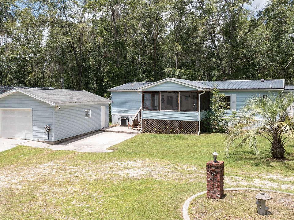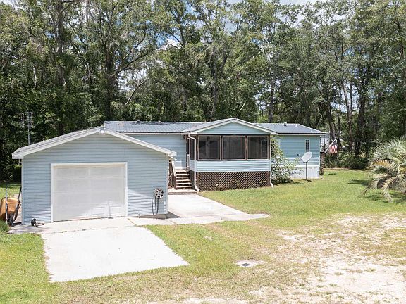 True pride in ownership with this home! Home sits off the road hidden behind the natural woods. Sit on the beautiful front screened deck and enjoy the beauty surrounding this home! Home sits on just over 2 acres and has a split floorplan with three bedrooms and two bathrooms with many bonuses! There is a bonus sitting room off the large kitchen with a small walk-out deck, wood laminate flooring, tile in bathrooms, gas stove and generator. Windows have all been upgraded to double pane windows with custom made plantation blinds made out of cypress wood! The interior of the home is immaculate as well as the exterior of the home. There are numerous outbuildings on the property, RV Carport (RV in photos does not convey), storage shed with concrete floor, pole barn w/storage area and a lean-to on both sides for all your toys, pump house plus a detached concrete floor garage with roll up door equipped with a safe-room if needed! There is a lot this home has to offer so make sure you view the features sheet and the 360 walk-though view of the home. Home is in a great location in North Florida so call your realtor today to set up a private showing!