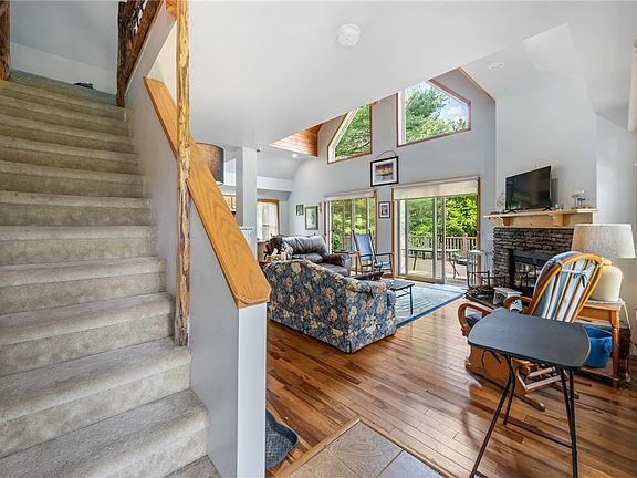 Ideal for nature lovers, this two-bedroom, one-bath home offers a perfect setting to enjoy nature from the back deck or take an afternoon nap under the shade of a wonderful sugar maple. The home features one-story living with a vaulted ceiling, an open eat-in kitchen and living room, a wood-burning fireplace, and a first-floor laundry closet. The primary bedroom features a deck perfect for enjoying morning coffee or evening beverages. The second-story loft can be set up as an additional bedroom or home office. The home has radiant heat and a mini-split for cooling.