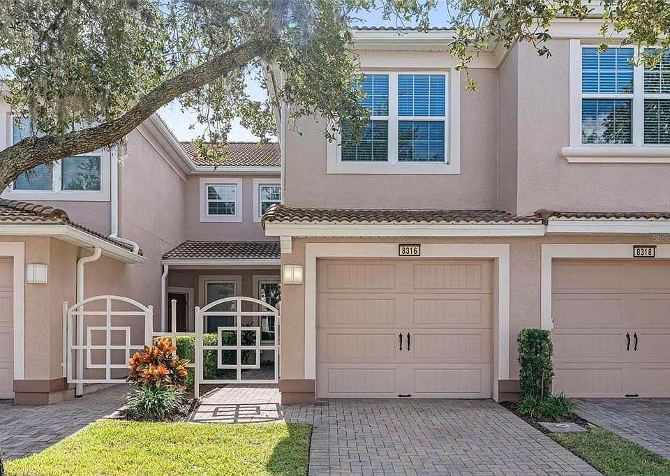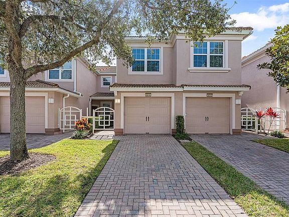 One or more photo(s) has been virtually staged. Welcome to The Promenades of Bella Trae, just moments from Champions Gate! This beautifully maintained 2 bedroom / 2 bathroom residence with a flex room perfect for a den, office, or third bedroom offers comfort and space. The freshly painted interior features beautiful laminate flooring throughout, with cozy carpet in flex room and ceiling fans throughout, keep it at a comfortable temperature, and an open concept living and dining area ideal for entertaining. The spacious kitchen includes an eat-in breakfast area, abundant counter space, and modern appliances including a refrigerator, dishwasher, microwave, and oven. From the kitchen, step out to your screened in porch perfect for morning coffee, evening relaxation, or gatherings with friends. The primary suite offers a serene retreat with tranquil views of lush greenery, the en-suite offers dual vanities, a enclosed walk-in shower, a custom-built closet with carpet, and an additional storage closet for towels or linens. The laundry room is generously sized and includes a full size washer and dryer. Garage space for 1 vehicle. Residents enjoy resort style amenities, including a sparkling pool and spa, tennis and pickleball courts, mini golf, a fitness center, yoga room, billiards room, media and reading rooms, and inviting indoor and outdoor lounge areas. The guard gated community provides peace of mind, while the HOA covers landscaping, irrigation, pest control, cable, high-speed internet, and roof maintenance for truly low-maintenance living. Conveniently located near I-4, major toll roads, and world class attractions like Walt Disney World and Universal Studios Orlando, this home combines luxury, comfort, and location. Don’t miss your chance to enjoy the beautiful Bella Trae lifestyle!