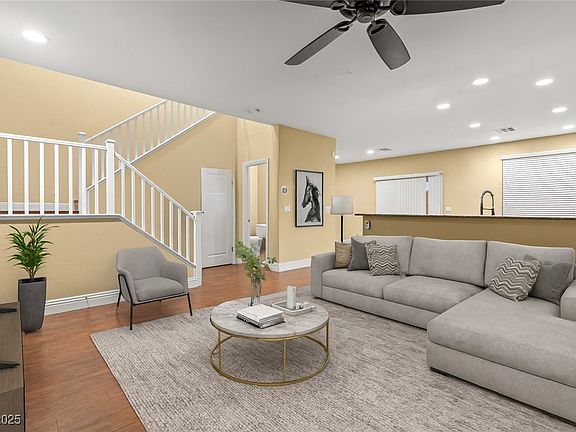 Welcome to this beautiful 3-bedroom, 2.5-bathroom home with an upstairs loft located in the desirable Mountains Edge community. From the moment you step inside, you'll appreciate the inviting open-concept layout, abundant natural light, and laminate flooring that flows throughout the home. The main floor features a spacious and functional design. The kitchen features granite countertops, breakfast bar, island, pantry and it’s pre-wired for surround sound. The living and dining areas are seamlessly connected, offering a bright and airy feel enhanced by professionally tinted windows that reduce heat. Take advantage of low energy costs thanks to a solar system paid off at closing! Upstairs you'll find 3 spacious bedrooms! Fresh exterior paint completed in November 2024 boosts curb appeal, and the spacious 2-car garage offers convenience and extra storage. Located near shopping center, parks and so much more. Come tour this amazing home!