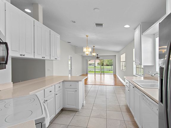 Wow! Stop right here and drive through this Beautiful pristine community with magnificent landscaping that has a lot to offer. This Capri Extended Model villa is situated on this beautiful serene lake where you can enjoy stunning views on your covered patio with fenced in yard. This home has AC in garage that can be an office, playroom or gym. Kitchen opens into living room perfect for entertaining. Corian counters, Large laundry room with Cabinets. Accordion shutters. This community has a Town Center Building, postal mail pick-up, VW Cafe , Hair salon, Lap Pool, Resort Style Pool, Bocce ball Courts, Tennis Courts, Pickleball Courts, Kiddie Park, Gym and so much more. In Addition Newer AC 2016, Newer Hot Water Heater 2019, Newer Refrigerator 2020.