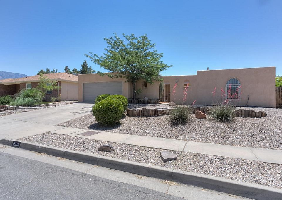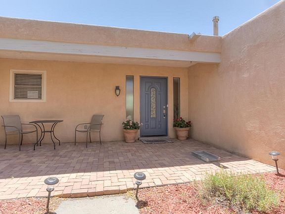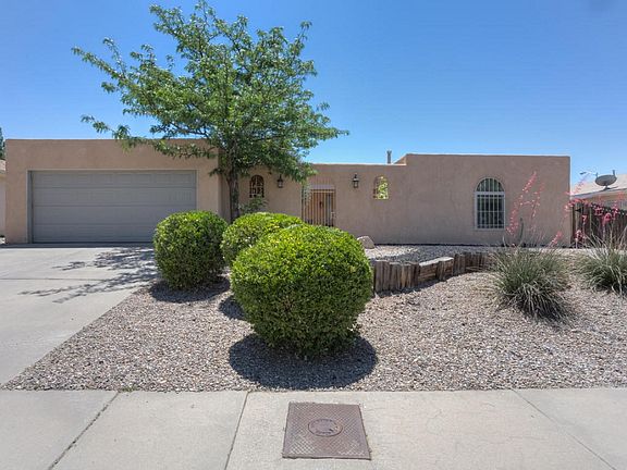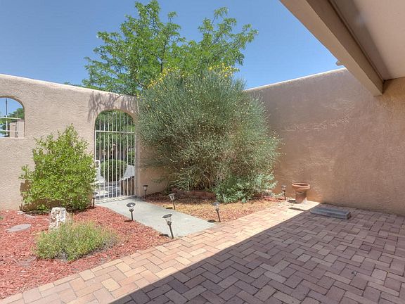 Fabulous family floor plan in La Cueva district! Just a few blocks away from the Cherry Hills Library this single level home with beautiful courtyard awaits. There are two living areas to spread out with you family, one with a lovely brick, wood burning fireplace. The kitchen has been updated with stainless steel appliances, and tile floors. There is also a large portable island for additional prep space. Living and dining areas have been updated with laminate wood flooring. Large master suite has his and hers closets, and an updated bathroom. Tile floors, new vanity and beautiful shower surround give this master suite bathroom a spa feel. Heating, cooling and windows have been updated as well. Large covered patio, and play gym for the kiddos.