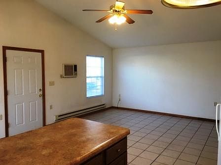 Refrigerator, stove, and wall unit air conditioner provided. Cement patio. Off street parking for 1 car. This building does not have laundry facilities but laundromat is 1 block away. Tenants pay electric only (& cable)
