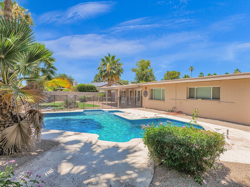 Immerse yourself in a Scottsdale sanctuary at this McCormick Ranch gem! Nestled on a quiet cul-de-sac near Shoshone Park, this meticulously maintained home offers a stylish escape. Step inside and be greeted by the warm glow of a freshly painted interior, accentuated by gleaming new floors throughout. The sparkling pool, resurfaced with sleek pebbletech, beckons you to cool off under the desert sun.
