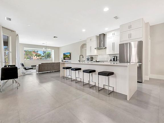 This stunning lakefront home in North Naples has been tastefully updated throughout. The new 30”x60” porcelain tile adds a touch of luxury, while the new kitchen features beautiful shaker-style wood cabinets and quartz countertops. The bathrooms have been fully renovated to create a spa-like experience. The owner's suite is a true retreat, offering views of the outdoor oasis with a waterfall pool and serene lake. It boasts 2 walk-in closets, a large freestanding tub, 2 master vanity sinks, and an oversized shower with a 90” tall glass enclosure. The AC system includes an APCO-X UVC light, providing clean and purified air. A Tesla charger is conveniently installed in the garage. Located in an A-Rated School District, this home is just minutes away from white sandy beaches, the airport, and world-class shopping. The smart home features a Nest WiFi thermostat, WiFi pool pump, and a WiFi garage door opener. The community offers newly installed security gates and low $158/month HOA fees. Furnished or turnkey negotiable.