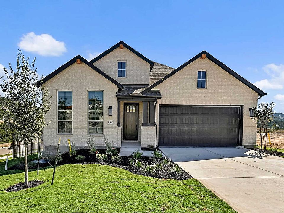 Beautiful one-story home with an open floor plan, featuring 4 bedrooms, 3 full baths, a dedicated office, and an entertainment room-all situated on a desirable corner lot. Enjoy the spacious back porch with stunning Hill Country views. The primary bedroom offers generous space, a charming bay window, tasteful finishes, and elegant architectural details throughout.