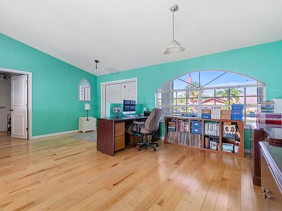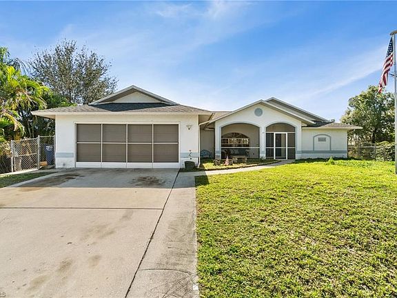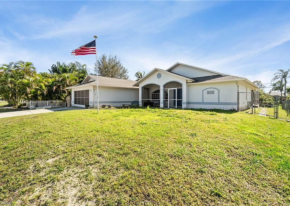 Step into this delightful 3 bedroom, 2 bath home with no HOA fees! New roof in 2018. New Hot Water Heater 2024. This split floor plan design home offers a spacious great room with formal dining, accentuated by high ceilings and hardwood floors throughout the main living areas. The kitchen provides ample counter space and storage, complemented by a breakfast bar that opens to an additional living room featuring a cozy fireplace, ideal for unwinding or hosting gatherings. The outdoor space is truly remarkable, featuring an attached gazebo and a screened-in enclosure around the pool, perfect for enjoying the outdoors. A covered seating area with custom pine ceilings offers a cool retreat from the sun. This home is an entertainer's dream! Conveniently located near shops, restaurants, and FGCU college. PRICE REDUCED FOR QUICK SALE
