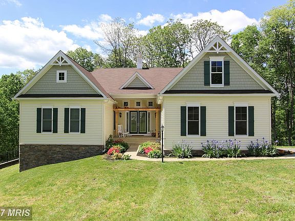 Stunning craftsman style home on approx 1.75 acres w/2car garage, covered balcony off master suite and charming front porch! 2story foyer w/hardwood floors through to DR & fam room w/tray ceiling & FP. Bright kit w/SS appliances, granite & tons of cabinet space! Convenient laundry room, Large MBR w/2WICs + en-suite MBA w/sep shower, soaking tub & sep vanities. Huge unfinished basement w/walk-out!