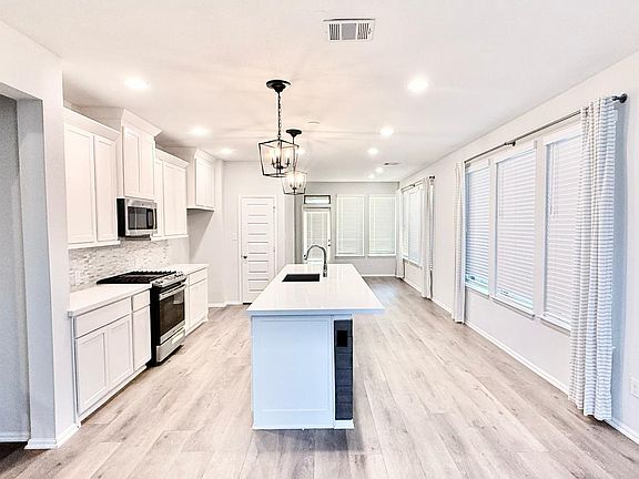 A Perry home 4 BR 3.5 bath with Game Room totalling 2338 sq ft available for rent starting immediately in the most popular community of Palmera Ridge. It has a large open 2 story family room with a wall of windows to let the natural light flow throughout. The kitchen features a large quartz island with built-in seating space, stainless steal appliances and plenty of room to cook and gather. The primary suite features a large bedroom, dual vanities, large glass enclosed shower and a walk-in closet in the primary bath. The Gaming room can be used to entertain guests & family and can be be a great spot to hook your home theatre system. This community has parks ,walking trails and ponds and is right on the Ronald Regan blvd with easy access to shops malls and restaurants & elementary school is right in the same community