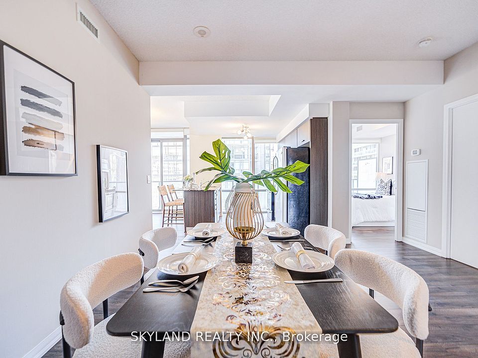 Corner suiteBright denNortheast exposureCity viewsFloor-to-ceiling windowsOpen-concept livingDining and kitchen spaces