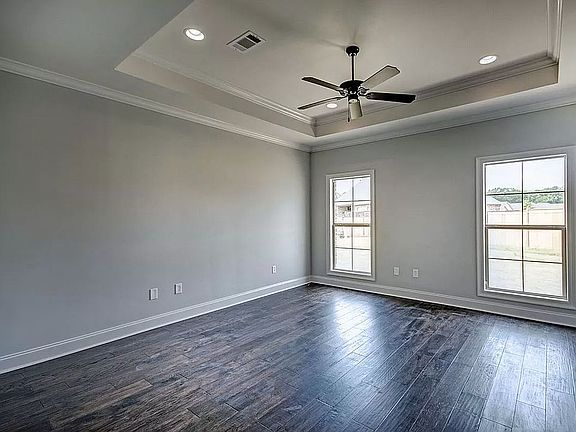 charming home with three bedrooms, two bathrooms, and an inviting office space. As you step inside, you're greeted by an open floor plan that seamlessly connects the living room, dining area, and kitchen, creating a sense of spaciousness and warmth. The living room features cozy furniture arranged around a focal point fireplace, perfect for relaxing evenings with family and friends. Large windows allow natural light to flood the room, creating a bright and airy atmosphere. Adjacent to the living room is the modern kitchen, complete with quartz countertops, stainless steel appliances, and ample storage space. A center island provides a breakfast bar, ideal for casual meals or entertaining guests. On one side of the house, you'll find the luxurious master suite, offering a tranquil retreat from the hustle and bustle of daily life. The spacious bedroom boasts a comfortable king-sized bed, a walk-in closet, and a stylish ensuite bathroom with dual sinks, a soaking tub, and a separate shower. On the opposite side of the house are the two additional bedrooms, each offering plenty of space and natural light. These bedrooms share a well-appointed bathroom, complete with a bathtub/shower combination and modern fixtures.