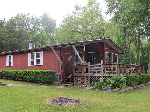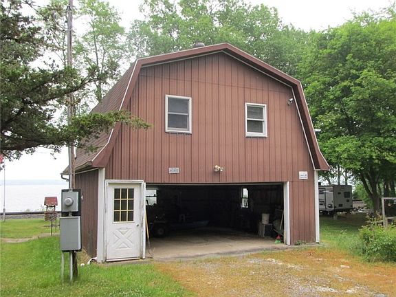 Imagine a two bedroom, two bath home nestled on 110 feet of picturesque Seneca lakefront, all for under $500K. Located on a quiet dead end street, this property offers tranquility and serenity, allowing you to unwind and relax on your large shaded deck while overlooking the lake. The house comes complete with a detached two-car garage. Upstairs in the garage, you'll find two bedrooms and a full bath, perfect for accommodating guests. This building could be updated into a separate seasonal residence. This remarkable property has been cherished as a beloved family retreat for almost four decades, and now, for the first time, it is available for sale. Stepping outside, you'll be greeted by a generously sized, level beach area, protected by a steel break wall. Additionally, there's another beachfront area with easy water access, featuring a shale beach. Water enthusiasts will appreciate the multiple docks and hoists, ready to accommodate your water toys. This property is truly a must-see, offering a rare opportunity to own a lakeside retreat with remarkable features. Deeded access to a boat ramp nearby. Don't miss out on this economical lake home. Furnishings convey with sale.
