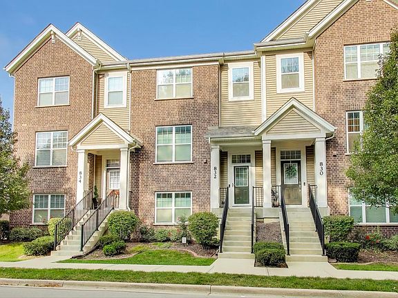 Beautiful Warrington model townhome with so many builder upgrades! An inviting open layout welcomes you, enhanced by lovely hardwood floors, ample windows and recessed lighting throughout. The spacious LR/DR combo features a charming mantled gas fireplace perfect for cozy gathering. Entertain with ease in this beautiful kitchen featuring quartz countertops, a large island, ample white cabinetry, all SS appliances and doors to a great balcony /deck, French doors lead to a sunny first floor den or office. Updated first floor powder room. Ascend the lovely wrought iron and wood stairway to discover two large bedrooms, both ensuite with Elfa organizer closets! Lovely spa-like primary bath features double vanity and seamless shower doors. Convenient second floor laundry closet with a full size washer and dryer completes this level. Unwind in the lower level flex room with pretty engineered hardwood flooring that is perfect for a guest bedroom, workout room or family room. Adjoining two car garage has a keyless entry and security pad, added shelving and lighting.This lovely townhome is located near the town center, just a five minute walk to Metra, shops, restaurants, library, theatre, and park, offering an unparalleled combination of quality and location! This beauty is truly a must see!