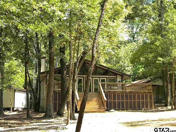 WATERFRONT home on Holly Lake in beautiful Holly Lake Ranch!! Drive up to the wooded lot and pull into the circular drive way with a one car carport and many trees and shrubs for total privacy from the street. The home front faces the lake, so the drive up is to the back side of the home. Sturdy, well built decks are located down the full length of the left side of the home (leading to a side entry door) and across the entire back of the home with plenty of room for tables/chairs and outdoor cooking equipment. Floor to ceiling windows and glass doors across the back of the home provide awesome views of the lake, back deck, wooded back yard and the dock on the water. The home features 3 bedrooms, 2 baths, 1 car car-port & a storage shed; inside an open concept living/dining area with high ceilings and a beautiful stone front wood burning fireplace. Corian counter tops in the kitchen with tile floors and a breakfast bar. The view from the kitchen is out to the dining/living areas and the wall of windows. Light, bright and well maintained describe this home. Roof only 5 yrs old. Other updates in recent years include laminate wood flooring; tile in the kitchen & baths; and updated kitchen & bathrooms. No popcorn ceilings! In the great outdoors, fish off the dock located below; launch a kayak or boat; or just sit & relax in the breezes off the lake. Back at the house, sit on your back deck and enjoy the abundant deer and wildlife that roam freely everywhere! Great location within a few short minutes of the west side entry gates at Holly Lake Ranch. The Ranch features 2 large lakes (Lake Greenbriar & Holly Lake), an 18 hole golf course & pro shop; swimming pools; miniature golf; pickle-ball; volleyball, tennis; basketball; walking trails, boating, fishing, a 24 hour fitness center; golf club restaurant & 19th Hole grill; walking trails; pool hall; many activities to join! Move in ready, make this your full time or get away LAKE FRONT home at Holly Lake Ranch!