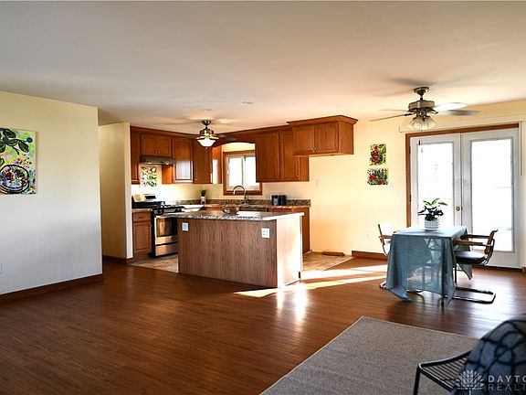 Are you craving a sprinkling of wonderful, small-town charm with a dash of serene, countryside landscapes? You'll be delighted to find precisely those in this 1048 sq ft, 3-bedroom, 1 bathroom home! It's just a few short blocks from downtown shops and near the grocery while also boasting a peaceful, unobstructed view to fields in the backyard. One foot in town and one foot in the country! Located on the east end of the highly desirable village of Versailles, this tidy ranch-style home was built in 1959 and benefits from a recent kitchen and bathroom remodel. In addition to a Whirlpool dishwasher and GE gas stove, the kitchen is outfitted with handsome storage-packed cabinets, a deep stainless-steel sink, and hardworking laminate countertops. Luxury vinyl plank flooring is underfoot throughout the dining and living room, the kitchen, and the center hallway. Original hardwood flooring remains in the bedrooms. A backyard deck looks out to a shaded fenced-in lawn with expansive views of open fields. A wooden shed offers the perfect place to stash lawn and garden tools. The basement features an unfinished rec room which could easily be converted to an additional living room, studio, bedroom, office, or playroom. Also in the basement is a large, finished bedroom and convenient attached half bath. Located in the basement is the laundry room, which includes a newer Maytag washer and dryer. An attached garage offers convenient storage and easy access to the backyard. Jump at the chance to see this charming ranch style home and schedule a showing with your agent of choice today!