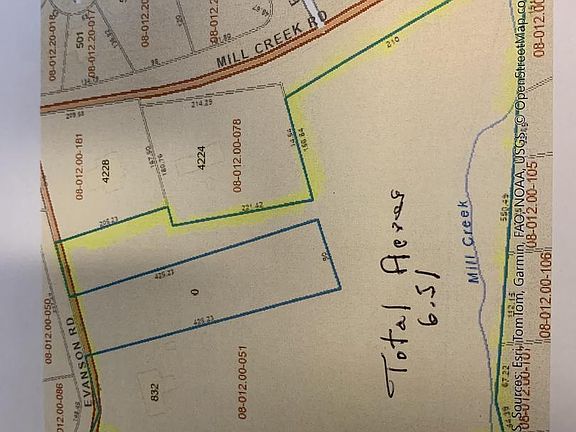 Great opportunity for development in Hockessin. Two level parcels included...5.63 acres and adjacent .88 acres with public water and sewer available on Evanson Road. Zoning is NC21. There is a small cape cod near the right side of the larger parcel with a detached two car garage. Another possibility is a charming home on 6.51 acres with three bedrooms, two baths and a den...but needs some TLC and to be sold in "as is" condition. Features include hardwood floors, enclosed front porch, rear patio, deck and a generator. Mill Creek is at the back of the property but records show that the house is not in the flood plain. Buyer is responsible for all due diligence regarding a possible subdivision.