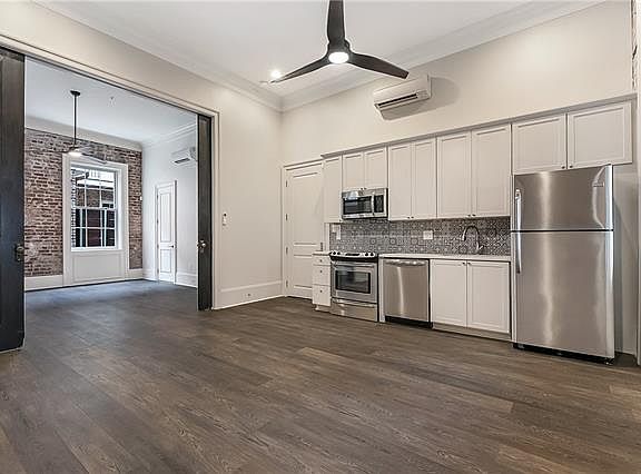 Awesome LOCATION in the middle of everything Downtown! Restored historic 1830's vintage bldg. Privacy is a premium in this boutique bldg. w/only 4 units. First floor flat, open, spacious, cozy & charming. Luxurious renov includes wash/dry, high clgs, exposed brick walls, & modern kit w/stainless appl & quartz countertops. Walking distance to CBD, Warehouse & South Market Districts, Lafayette Sq, French Qtr, restaurants, galleries, shops, Rouses & Streetcar. Great getaway space! NO ON-SITE PARKING.