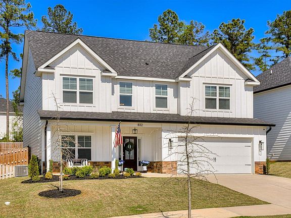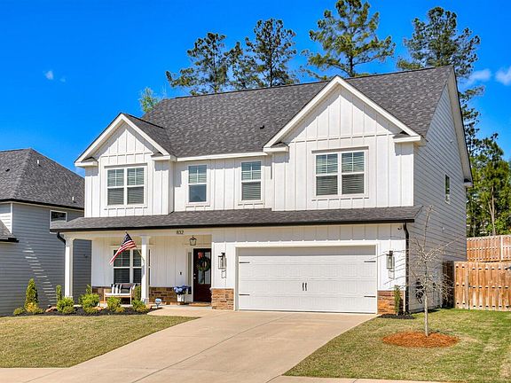 Your search for the perfect home ends here at this STUNNING 5 BR/3 BA 2789sf home nestled on a quiet street in the Ridges section of coveted Whispering Pines! This well-maintained and meticulously cared for home features Designer lighting & custom moldings throughout and upgrades galore! Providing the perfect ambiance for dinner parties the formal dining room, with coffered ceilings and wainscoting, is adorned with a gorgeous Serena & Lily Ventura Chandelier! The kitchen boasts pristine ''Iced White'' granite countertops, large center island with breakfast bar, SS appliances, farmhouse SS sink, upgraded subway-tile backsplash, upgraded light fixtures, abundance of cabinets and a walk-in corner pantry with wood shelving! Natural lighting shines through into the cozy eat-in kitchen with shiplap accent wall overlooking the covered Game-day porch with wood-burning fireplace & remote-control ceiling fan for cozy nights by the fire or warm summer evenings! The open floor plan, with family & pet-friendly waterproof LVP flooring, flows into the spacious great room that features coffered ceilings, custom wood moldings and German Schmear enhanced stone surround fireplace. Also on the main floor is a guest bedroom/in-law suite with custom woodwork accent wall and designer lighting. A full bathroom with granite counter top and tile floors is just around the corner. Wood-tread staircase with custom runner leads to the upstairs split floor plan. The generously sized Owner's suite features an en-suite with garden tub, large fully tiled walk-in shower, dual granite countertop vanities, ceramic tile flooring and ample sized walk-in closet with upgraded wood shelving! Just outside the Owner's suite is the laundry room complete with built-in cabinets, upgraded lighting and ceramic tile floors. Currently being used as a Bonus room, the large versatile 5th bedroom is highlighted by double barn doors, custom wood accent wall, upgraded LVP flooring, vaulted ceiling with new remote control ceiling fan and a convenient built-in quartz top dry bar with refrigerator. The refrigerator can easily be slid out to convert the area to a desk. On the other side of the hallway are two more bedrooms both with vaulted ceilings, and one featuring custom wood work as well as a designer dome chandelier. Completing the upstairs is a full bathroom with double vanity granite countertop. Additional features not previously mentioned includes upgraded lighting in the Owners suite, main level hallway, the exterior garage fixtures and front porch lighting, gutters and french drain in the backyard! The entire main floor and stairwell, including the ceilings, has recently been painted! Neighborhood amenities include scenic walking trails, 3.5 acre park, fire-pit, playground and pool! Located in one of Columbia County's most desirable neighborhoods and 5-star school zone, you'll have easy access to Riverwood Shopping and amenities and just minutes from Fort Eisenhower, Downtown Evans, Patriots Park, Blanchard Woods Soccer Complex, Betty's Branch Boat Ramp, Clark Hill Lake & I-20! Schedule your showing today as this won't last long!! **Home is equipped with Ring doorbell and recording devices**If square footage and/or schools are important, please verify during buyers due diligence. Room dimensions are rounded to the nearest foot and are approximate.**
