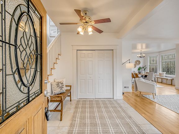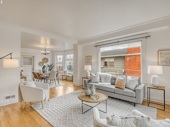 Welcome to this stunning Portland Foursquare Craftsman, where a big, welcoming front porch sets the tone for timeless charm and modern versatility in the heart of Montavilla. This spacious 4-bedroom, 3-bathroom home is filled with natural light and vintage character, offering the perfect setup for live/work life, multigenerational living, or rental income. The main home features three true bedrooms and two full baths, with high ceilings, an open layout, and beautiful flow throughout. Original hardwood and fir floors add warmth and authenticity, while large windows invite sunlight into every corner. A generous kitchen with a casual eating area connects effortlessly to a formal dining room and living room, making everyday living and entertaining feel seamless. The permitted 1-bedroom ADU with a private entrance offers endless flexibility—ideal for guests, creative workspace, or additional income. Practical touches like seismic retro-fit, newer sewer, a nice-sized utility room, all appliances included, and a functional mud-room leading to the backyard add comfort and convenience. Step outside to enjoy a fully fenced yard with an oversized covered patio perfect for year-round hangouts, BBQs, and entertaining. There’s space to relax, room for pets to roam, raised garden beds ready for planting, and a tool shed for added storage and projects. Tucked into a vibrant neighborhood with a Walk Score of 80 and Bike Score of 95, you’re just minutes from parks, Rocket food carts, Mt. Tabor, farmers markets, restaurants, bars, coffee shops, and the beloved Academy Theater—everything that makes Montavilla one of Portland’s most sought-after communities. [Home Energy Score = 3. HES Report at https://rpt.greenbuildingregistry.com/hes/OR10237126]