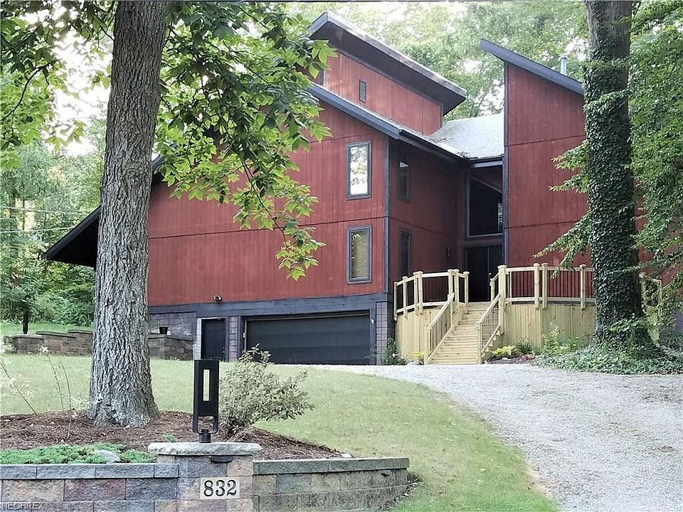 FABULOUS Contemporary home! A Brand NEW deck and stair on the front of the home leads you to the entrance of the home - a DRAMATIC FOYER with porcelain tiled floor. New bamboo floors and porcelain tile flooring throughout, spacious Great Room with fireplace and stair cable railing to the upstairs, as well as a MASSIVE Kitchen overlooking the wooded backyard! Formal Dining Room and Bedroom on the 1st Floor/Main Level, as well as Office. 1st floor laundry. Family Room with fireplace, utility room, and workshop located in the lower level. On the 2nd floor, you will find another Bedroom and FULL BATH with DOUBLE BOWL VANITY, and the Master Suite with a large walk-in closet and Glamour Bath with stunning tiled shower. Another Bedroom and additional space for storage are located on the 3rd floor. Attached, 2 car garage is situated underneath the home, with entrance into the home. NEW deck and patio - all of this situated on a stunning wooded lot with privacy. MODERN RUSTIC!