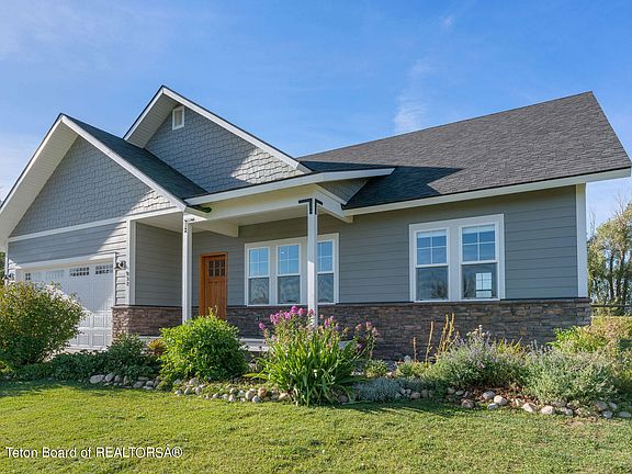 Abutting trail system and a pleasant seasonal canal, this beautifully landscaped and finely crafted home boasts one of the nicest in town locations to be found! Enjoy evening strolls & XC skiing thru the back yard gate, or a short walk or bike ride into town for dinner or shopping. With a 2019 build date and meticulously maintained, the home shows like new. High quality finishes include stone counter tops, vintage cabinetry, tile floors, wood doors and trim, insulated window blinds, bamboo hardwood floors, powder room bath, heated garage, low maintenance exterior siding with stone and steel wainscot... and the list goes on. Modern appliances and mechanical systems include whole house forced air heat, recirculating instant hot water, and stainless appliances. A must see Driggs Home!
