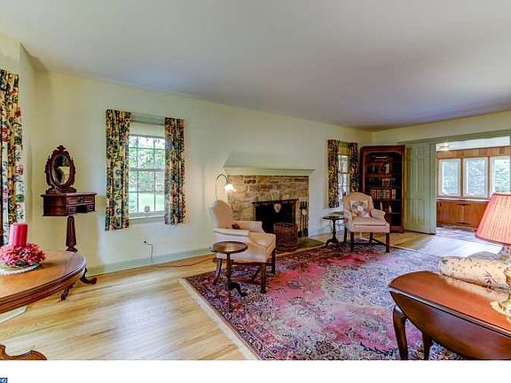 This West Trenton Colonial has all the amenities, with all the benefits of well built traditional home. Built in the early 50's, you're sure to notice the spacious rooms and the beautifully refinished hardwoods throughout the home. Plenty of windows provide ample natural light, and the trees on the property provide just enough shade to allow days of open windows when most have the a/c on! The spacious Living Room with bay window and L-Shaped Family Room, each with a Stone fireplaces, add that special touch to your gathering and warm you when the weather is cooler. Separated from the Living Room by sliding panel doors, the Family Room boasts a raised bluestone hearth, flagstone floor,cherry paneling (don't fret - it's gorgeous!), built-ins, and windows surrounding with a wonderful unobstructed view of the yard. The Dining Room with bay window leads to the kitchen that was updated in 2008 with maple cabinets, quartz counter and tile floor. Upstairs you'll find three good-sized bedrooms, and a full bath. A full, dry unfinished basement completes the home. The driveway brings you around to the back of the home to the rear entry attached garage with storage area. The backyard is so welcoming, bordered by trees and shrubs, with a flagstone patio for sitting out on the summer evenings.