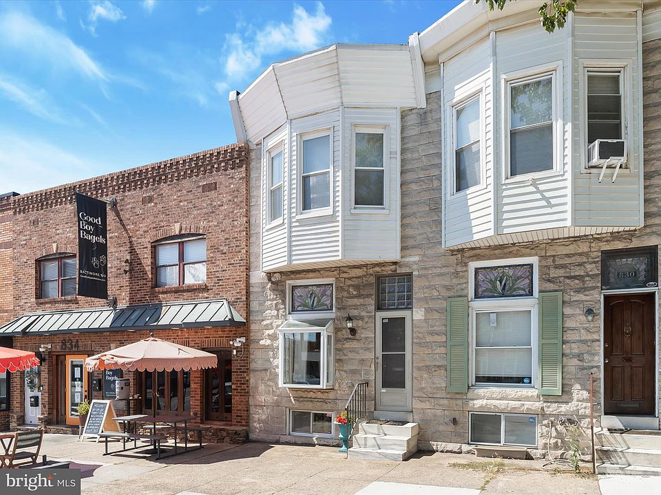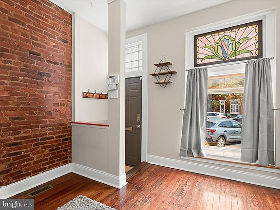 Historic charm meets modern convenience in this inviting 2-bedroom, 2-bath rowhome in the vibrant Brewers Hill neighborhood. The bright and welcoming living room features rich hardwood floors, an exposed brick accent wall, and a pleasing neutral palette that flows throughout the home. A decorative stained-glass window and a deep box window, perfect for plants, pets, or décor that add unique character. The living room transitions seamlessly into the dining area, highlighted by a contemporary ceiling fixture, before opening to the eat-in kitchen. Here, granite countertops, a peninsula breakfast bar, stainless steel appliances, a gas range, and a ceiling fan create a stylish and functional space for cooking and gathering. Step right out from the kitchen to the deck for al fresco dining, with stairs leading to a rare and highly desirable two-car parking pad. Upstairs, the primary suite offers a bay-style bump-out window and a private en suite bath. The second spacious bedroom enjoys access to its own private upper deck with city views. The finished lower level expands your living space, serving easily as a recreation room, home office, or potential third bedroom. A full bath, laundry room, and walk-out access to the parking pad complete this versatile level. All of this comes with a sought-after Brewers Hill address; steps from the new neighborhood bagel shop, The Shops at Brewers Hill, popular Mobtown Brewing Company, nearby Canton hotspots, and just minutes to the Johns Hopkins Metro station. This home truly checks every box.