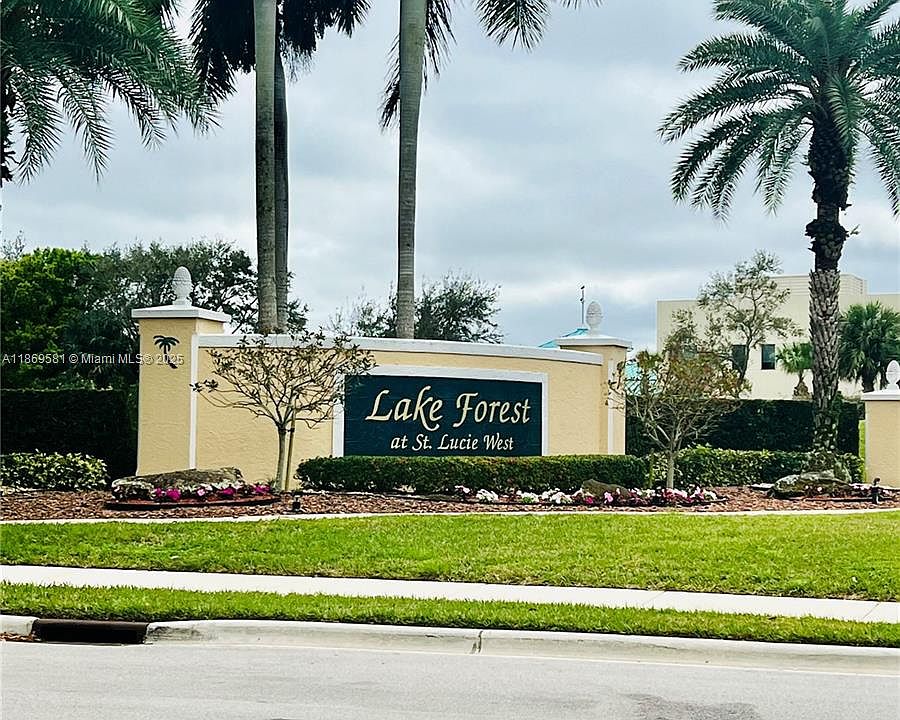 Welcome to the beautiful gated community of Lake Forest at St Lucie West. This fabulous 3 way split bedroom plan home is move in ready. Many special features include sitting room in Master suite, eat in kitchen and a full length covered patio that backs up to a private berm. New two inch horizontal blinds throughout. Offered at an affordable price to live in this spectacular development with acres of preserves, upland trails and lakes. The many amenities include 2 pools, exercise facility, clubhouse, picnic area and playground. You can make this your new home before the end of the year!