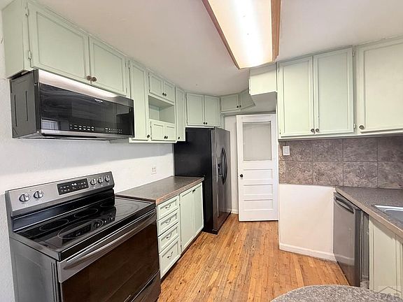 This spacious 5-bedroom, 2-bath home boasts great curb appeal and inviting details throughout. Step inside to discover original hardwood floors, a warm and welcoming living area, and kitchen complete with all appliances. The main-level master bedroom features new laminate flooring. Downstairs, the finished basement offers a large bonus room with tile flooring, two additional bedrooms, another bathroom, and a convenient laundry area with folding shelf, perfect for functionality and extra storage. Outside, enjoy a fenced backyard with mature landscaping, providing privacy and space for relaxing or entertaining. With plenty of storage options and a layout that blends vintage character with smart updates, this home offers both comfort and value. Don't miss your chance to make this well-maintained beauty your own, schedule your showing today!