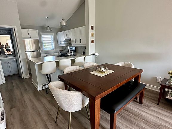 Available for the ski season mid December to mid April, this two-bedroom, two-bathroom condo features a reverse floor plan. The entry is located on the second level, where you will find the bedrooms, a bathroom, and a laundry area. The upper level boasts an open-concept living, dining, and kitchen space with cathedral ceilings, creating an airy atmosphere. Additional amenities include a gas fireplace, a storage/pantry area adjacent to the kitchen, and a two-piece bathroom. The condo has been tastefully remodeled and offers a view of Georgian Bay. Please note that all utilities are additional to the rental rate, and references are required. There is no landline, and pets and smoking are not permitted.