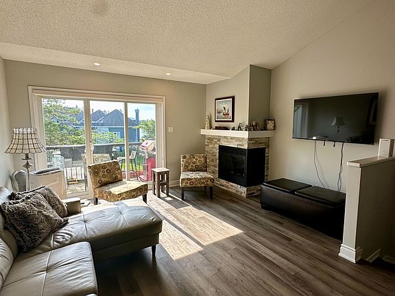 Cathedral ceilingsOpen-concept livingGas fireplaceView of georgian bay