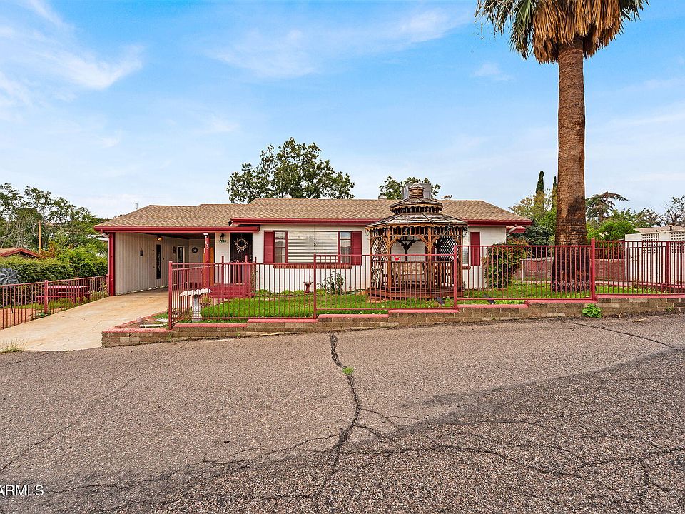 Enjoy sweeping valley views from this corner-lot 2-bed, 1-bath home in Miami! The bright living room features newer windows and a large picture window that fills the space with natural light. The galley-style kitchen includes matching wood cabinetry and built-ins for extra storage. Outside, enjoy a beautiful wood-inlay carport ceiling, a large storage shed, and a fully enclosed back porch offering added storage or hobby space. The fenced yard, gazebo, and side-street access make this property both functional and full of charm to enjoy the view.