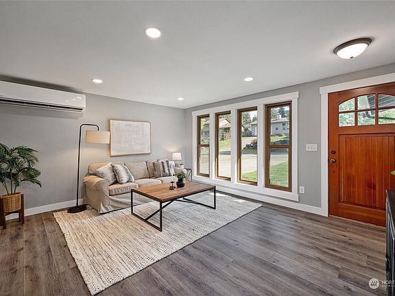 Extensive updating and remodeling has been done to this 3 bed, 2 bath rambler on a quiet street close to Bham trails, Lake Padden, and Galbraith! This home has been completely transformed and improved, with luxury vinyl plank flooring, recessed lighting, new kitchen and bathrooms with quartz counters, new gas fireplace insert, air conditioning, and more! High-quality, large windows give the home ample natural light, and the open layout and huge kitchen island make for a great entertaining space where dining, kitchen & living room all connect. With a finished 2-car garage and a large shed in the fully fenced backyard, this home offers tons of storage for your outdoor gear. Only minutes to world-class hiking, biking, and lake access!