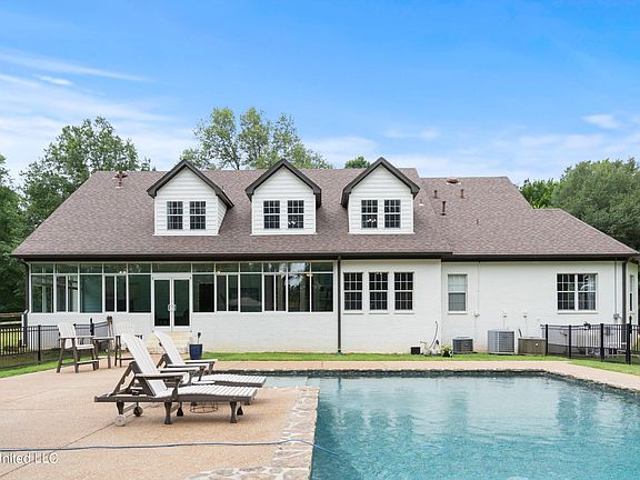 Welcome to 8320 Bethel Rd, a serene sanctuary nestled in the heart of Olive Branch, MS. This exquisite property spans 6.04 acres, offering a private and peaceful setting that feels like your very own park. This beautiful home boasts well planned 3,683 square feet, 4 large bedrooms, a versatile flex room, and an expansive sunroom that floods the space with natural light. Enjoy a seamless flow from the large open living room to the dining area and kitchen, perfect for entertaining family and friends. Dive into relaxation with a brand-new in-ground pool and unwind in the charming gazebo. The property also features a delightful tree house for children and a garden, making it ideal for outdoor enthusiasts. Surrounded by lush greenery, the property offers a tranquil, park-like atmosphere where you can reconnect with nature. The home includes a side load attached garage, storage building and tractor shed, ensuring ample storage for all your outdoor equipment and gardening tools. Located within minutes of the highly sought-after Lewisburg school system, this home is perfect for families looking for top-tier education options and also has easy access to I-269.