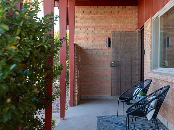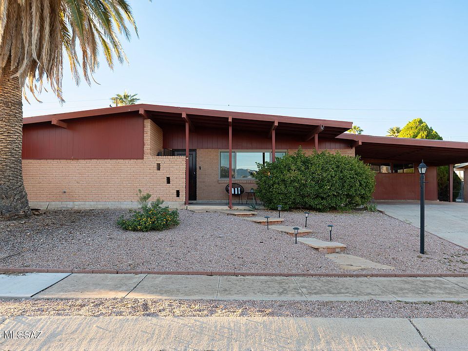 Mid-century meets modern comfort in this updated Tucson home. The open floor plan with 3 bedrooms & 2 baths features spacious living areas and a classic kitchen with warm wood cabinetry, stainless appliances, and plenty of counter space. The primary suite includes a remodeled bath with dual vanities and a walk-in shower. Enjoy the private backyard with covered patio and a sparkling pool surrounded by mature landscaping. A detached multi-purpose room off the carport offers space for games, projects or more. HVAC recently updated, LVT flooring, and pool updates: pump, plaster, and more. Located near parks, shopping, and dining in the east side of Tucson. Furnishings and housewares are available to easily create a stylish full-time residence, furnished rental, or seasonal getaway.