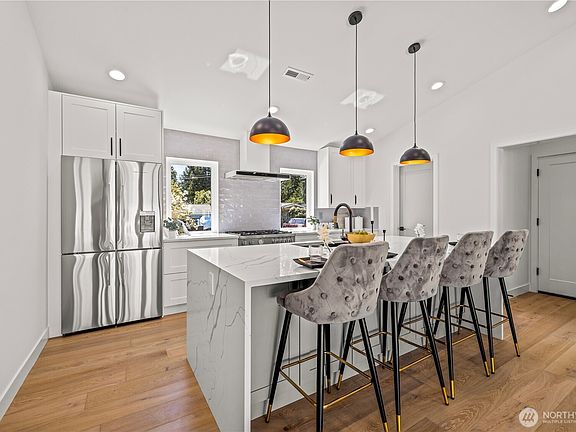 Stunning modern farmhouse fully reimagined by 2S Design Build. This 2,600 SF rambler features 2 luxurious primary suites, open-concept layout, vaulted ceilings, Energy STAR appliances, chef’s kitchen, new sewer line, smart home upgrades, heated bathroom floors & huge 400SF storage loft above garage. Enjoy indoor-outdoor living with oversized decks, fenced yard & EV charging. Private cul-de-sac lot in Northshore SD. A rare blend of design, comfort, and functionality—don’t miss it!