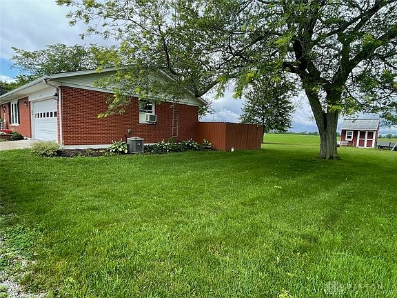 Excellent brick ranch requiring very little maintenance and ready for new owners. Step inside a welcoming living room with beautiful morning sunrises leading to the dining room which has french doors to walk out onto a wood deck with private back yard offering a serene retreat for relaxation or entertaining with sunset views. Partially finished basement with ceramic tile flooring, wood burning fireplace, possible 3rd bedroom, a full bathroom and office adding so much living space with plenty of room for storage. The 2 car garage is air conditioned and has a wash basin, sub panel and a walkout door to the back yard. The shed stays with the house has electric and water. Don’t miss out on this beautiful country home in the Miami East School District.