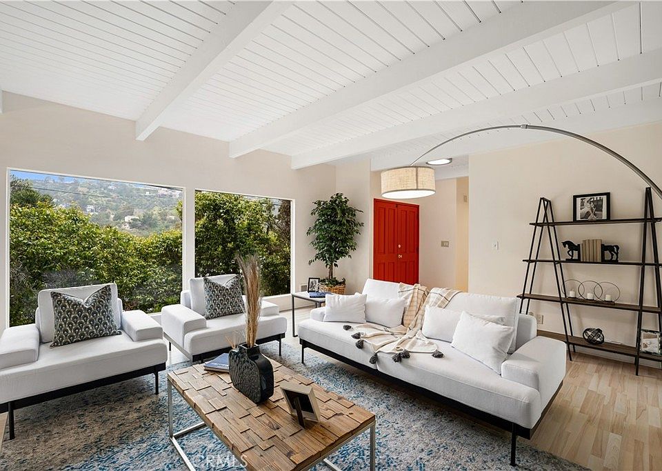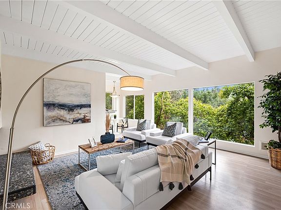 The legendary music of the 1960’s filled the canyon and this home. Owned by jazz musician and musical instrument inventor, Emmett Chapman, you can feel the creativity and inspiration that infuses this home, as you take in the sweeping views of the canyon, from the dining room, living room, and primary bedroom.