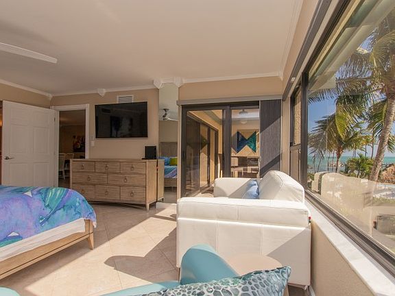 DETAILS: Fully renovated condo that offers inspiring tropical views including the ocean from the open-air balcony accessed from the main living area and the master bedroom suite. This charming, clean, spacious 2 bedroom 2 bath condo has all the comforts for a wonderful vacation. Furnishings have been updated and new items are being added frequently. This unit is located in one of the most desirable complexes in Islamorada. Its central location provides convenient access to everything Islamorada has to offer - world class diving, fishing, and restaurants. If you are feeling adventuresome, snorkel or scuba dive in the crystal clear sea or take a fishing charter to some of the best fishing spots in the world. If you bring your own boat, dockage is included with your rental on a first come first serve basis. The dock offers a fish cleaning station, covered sitting area, a place to throw your line in the water and an ice machine. Take your catch to the one of the local restaurants and have the chef prepare it for you or grill it yourself on one of the community propane BBQ grills. This complex also features a fresh water zero entry heated pool, therapeutic hot tub, sandy beach, an oceanfront fitness center, a community room and Tiki area. This property is professionally managed by Keys Holiday Rentals.
